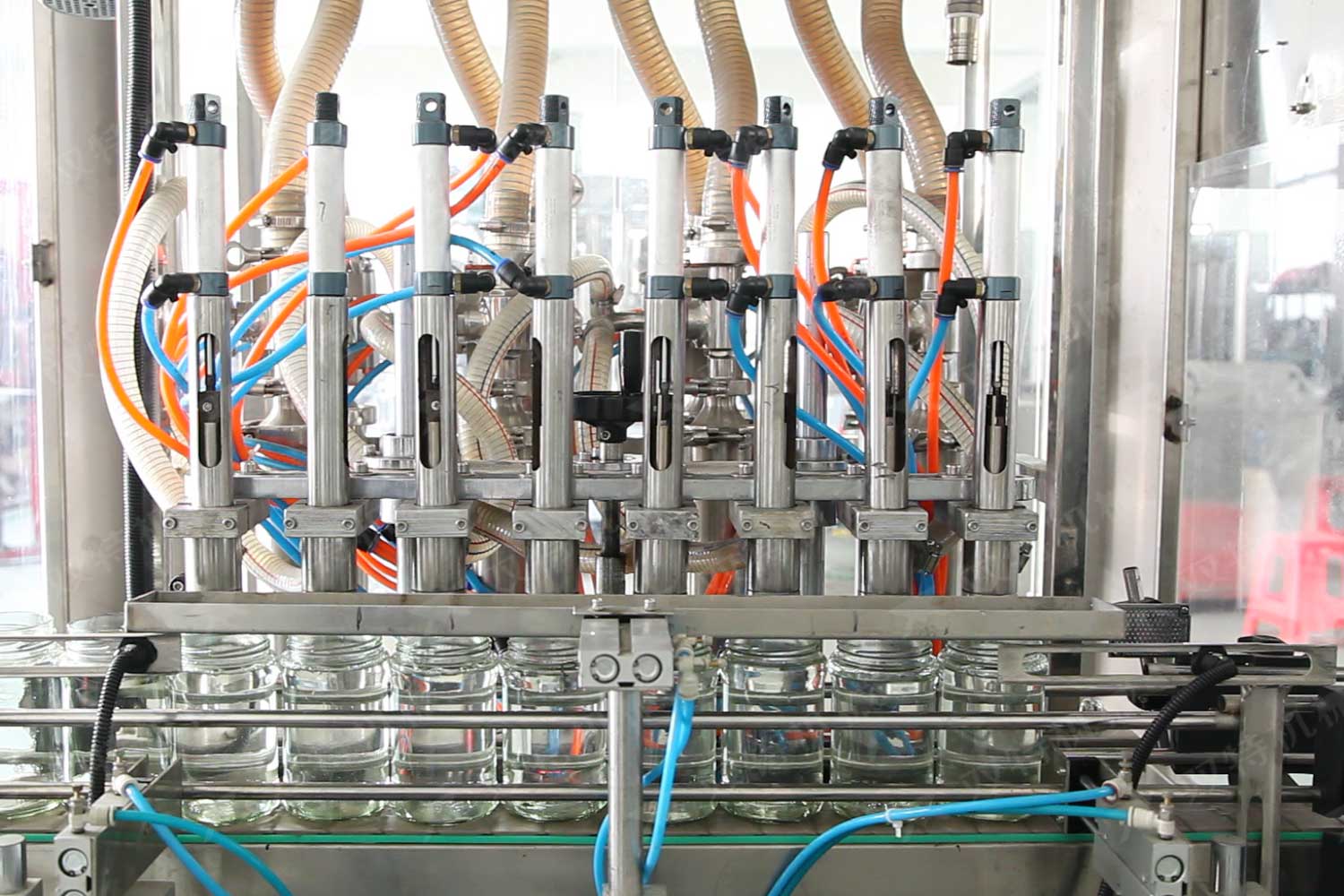 • 灌装头配置光电系统,能够有效精确识别灌装瓶定位状况,进一步实现有瓶灌装、无瓶少瓶不灌装。